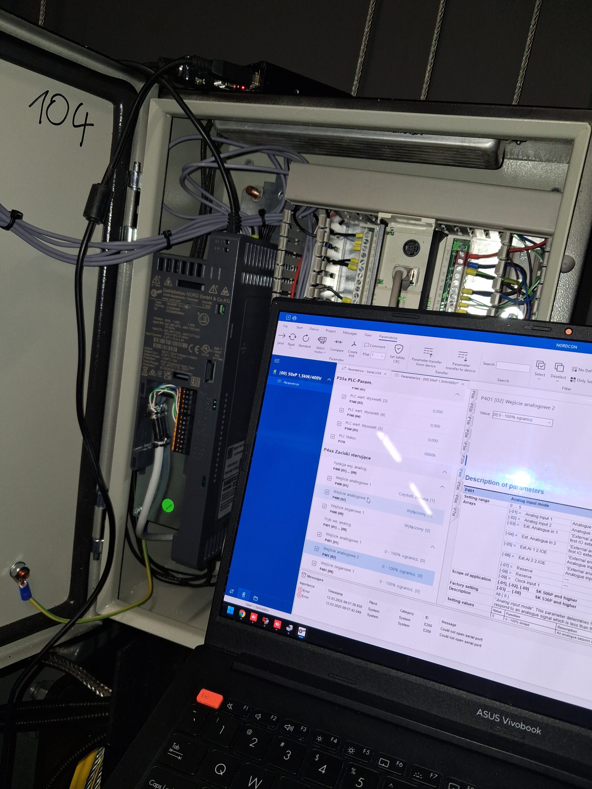 The video and images below illustrate example inverter connections, demonstrating the process of configuration, testing, and troubleshooting potential errors. The materials showcase various operational scenarios and the steps involved in verifying correct functionality, reflecting my experience in electrical systems and automation.